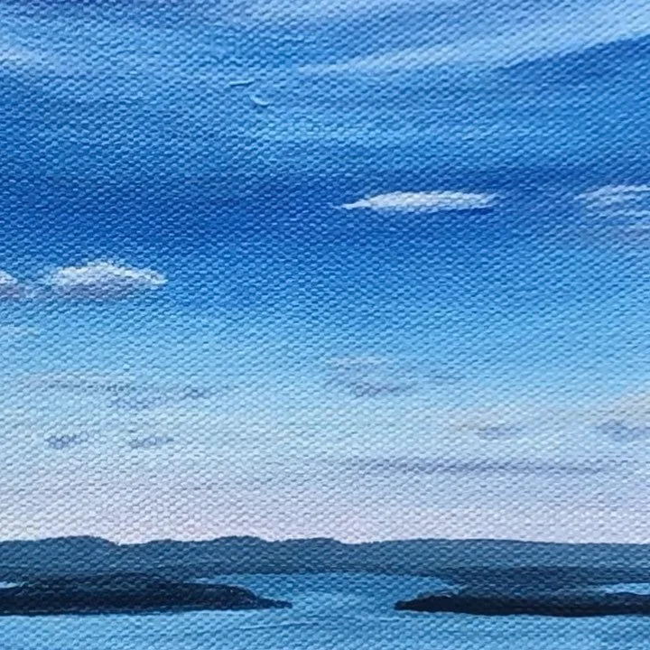 Painting brings peace and a sense of play to my days. One of my favorite things to do is explore and go on outdoor adventures with my family. Maine’s backyard playground is full of trails leading to the rocky and pine-edged coastline and views of islands rising out of the calm Casco Bay waters.