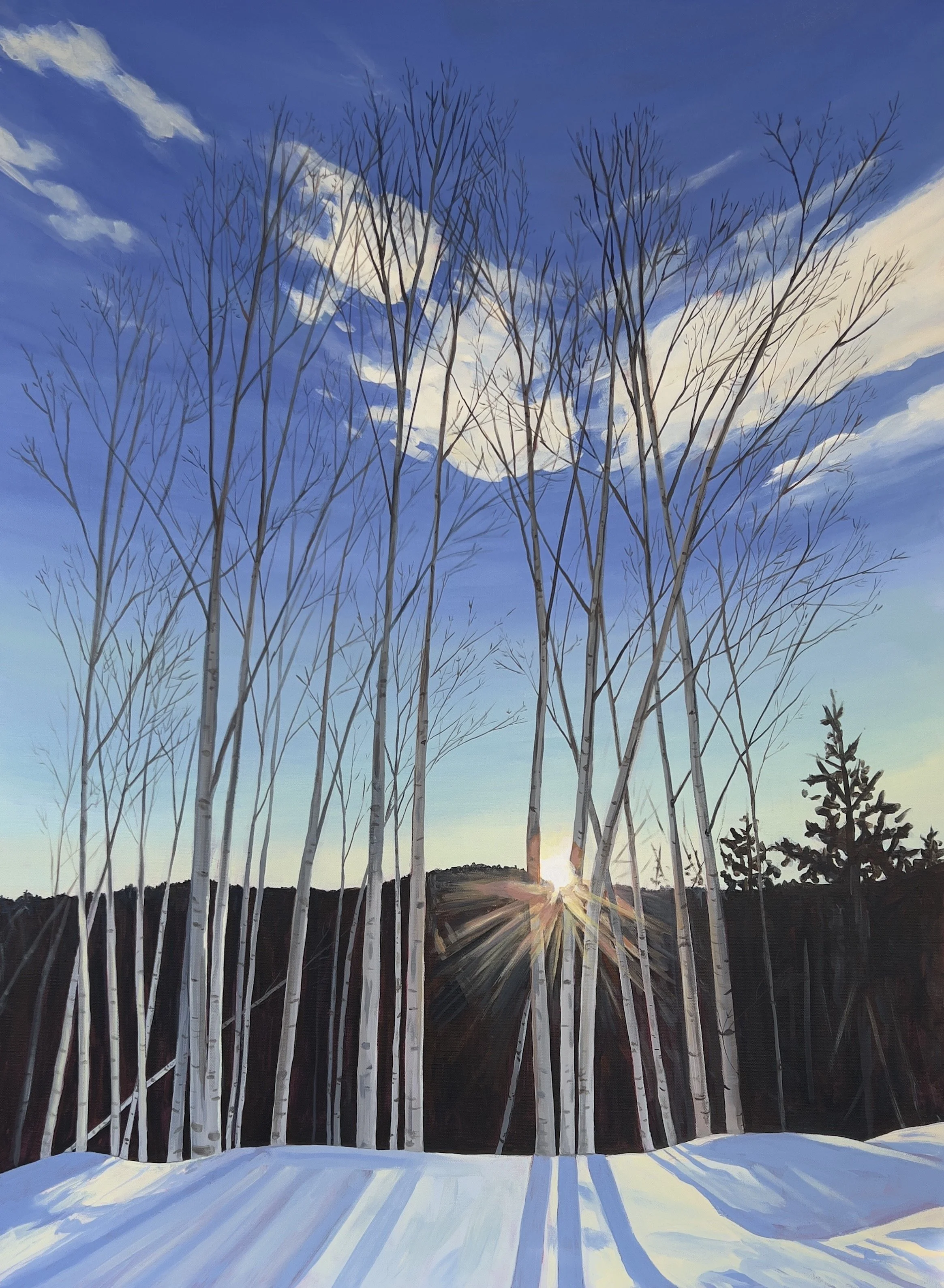 Through weaving warm and cool neutral tones, a nest forms and held inside are a varying number of robin eggs. Lastly, a few, subtle, iridescent strokes of gold paint are added to the nest to illuminate the energy found in a place where you feel like you belong, a place where you feel free.